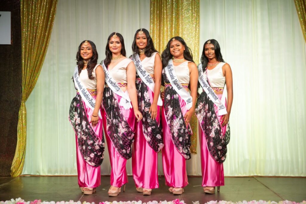Miss Teen India Worldwide Suriname 2023 Darshanie Mahabier-Panday, Shivangie Balgobiend, Ashley Sewcharan, Shradha Tedjoe en Sheranie Marwad.