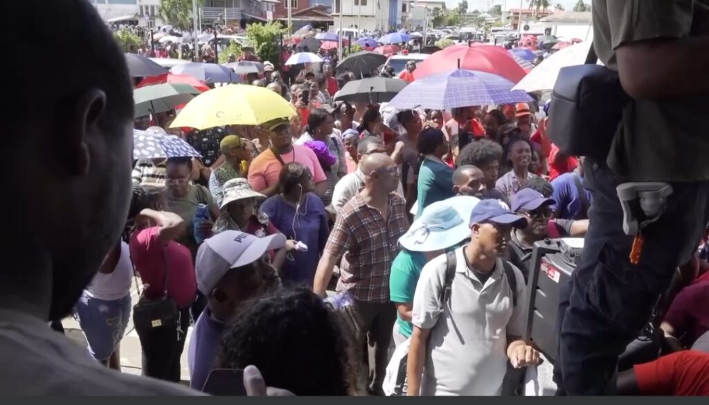 De gezamenlijke vakbonden hadden zich vandaag, donderdag 16 november, verzameld bij het Kwakoe-plein en zijn van daaruit gelopen naar het Kabinet van de vicepresident Ronnie Brunswijk. De massa zou niet op het terrein binnen gelaten mogen worden vanwege de veiligheid. Door de vakbondsleiders werd echter aangegeven, dat de veiligheid gegarandeerd is, waardoor de massa uiteindelijk naar binnen mocht. De mensen stonden erop toe dat de vice president naar buiten moest komen. Dat gebeurde na enige tijd ook.