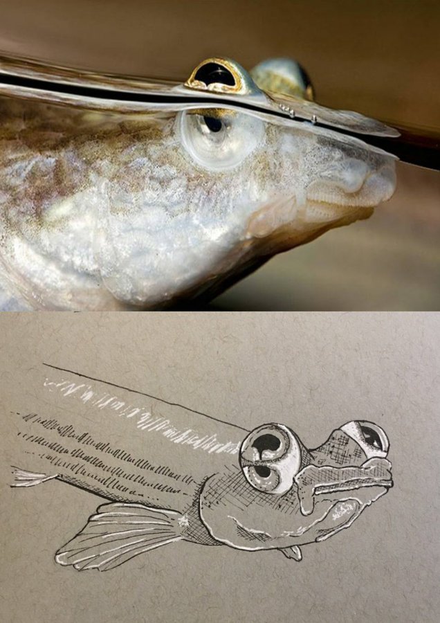 ze kunnen tegelijkertijd onder en boven het wateroppervlak kijken.