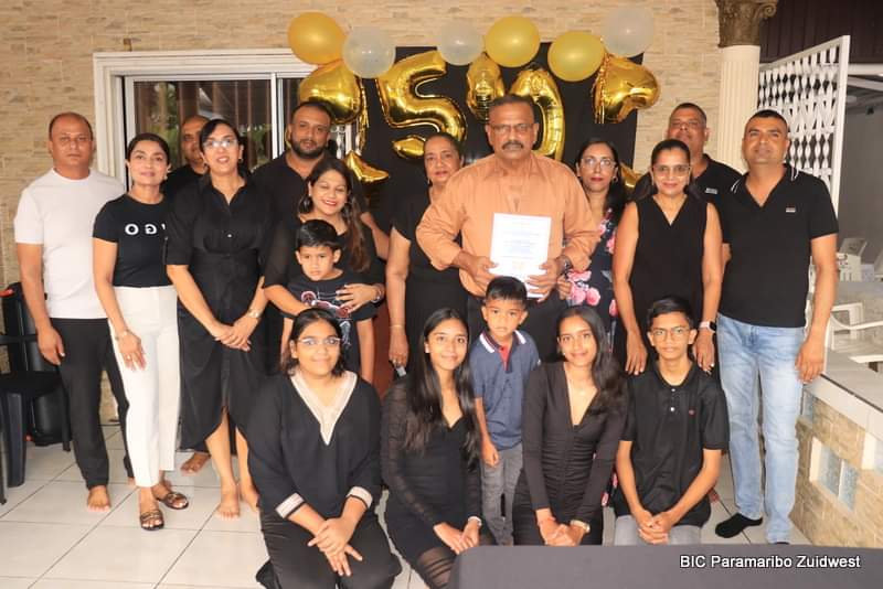 Het echtpaar Chotoe-Jewlal vierde vrijdag 17 november hun gouden bruiloft. Het echtpaar belijdt het Hindoe geloof. Samen hebben zij drie dochters en een zoon.