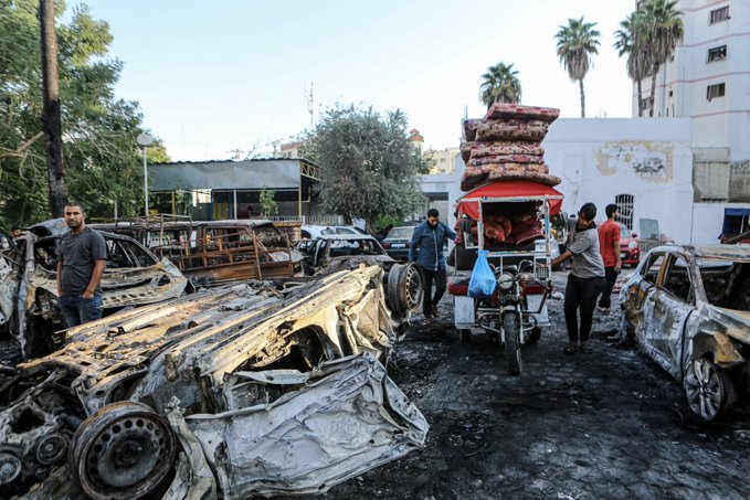 Samer AbdelJaber, hoofd van het Wereldvoedselprogramma (WFP) in Palestina, zei dat hoewel het leveren van voedsel aan het Al-Ahli-ziekenhuis in Gaza-stad een ‘veelbelovende stap’ was, het VN-team ‘honger, wanhoop en vernietiging’ zag.