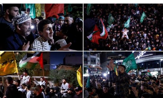 Palestijnen vullen de straten van Ramallah om gevangenen te verwelkomen die zijn vrijgelaten uit Israëlische gevangenissen.