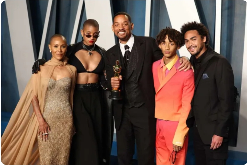Trey, Jaden en Willow, en nog andere families. Jada en Will, glimlachten terwijl ze opstonden en elkaar omhelsden. Smith werd gezien terwijl hij Pinkett Smith op haar voorhoofd kuste, waarbij ze glimlachte en haar ogen sloot, en de twee hun armen om elkaars middel sloegen.
