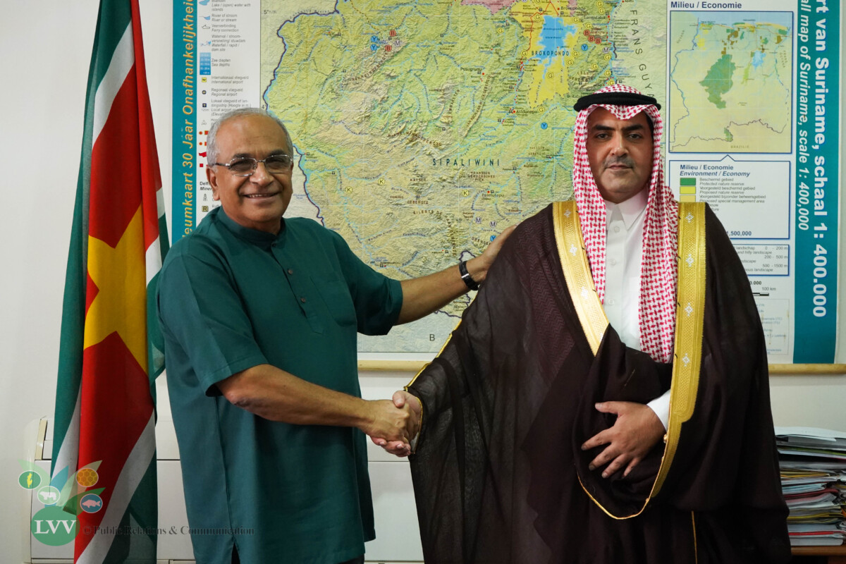 Minister Parmanand Sewdien van Landbouw, Veeteelt en Visserij (LVV) heeft de in Caracas, Venezuela, residerende ambassadeur van Saoedi-Arabië, Abdullah Muhammad Alsaihani, dinsdag 28 november ontvangen voor een kennismakingsbezoek.
