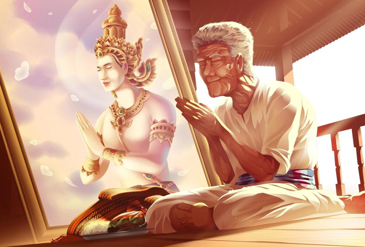 Er liep eens een oude wijze man door de slingerende paden van een uitgestrekt bos, ver van het rumoerige gewoel van de steden. Zijn naam was Ravi, en het was bekend dat zijn gedachten de diepste mysteries van het menselijk geloof ontrafelen konden. De dagen waren gevuld met overpeinzingen en de nachten met sterrengefluister, waar Ravi zijn antwoorden zocht.