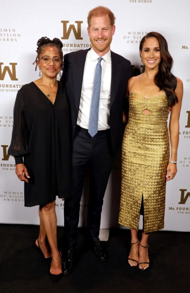 Meghan Markle, Prins Harry en Markle’s moeder, Doria Ragland, verschenen dinsdagavond allemaal in New York City, waar Markle een Woman of Vision Award van de Ms. Foundation for Women in ontvangst nam. De hertogin van Sussex verscheen op de rode loper; hoewel je, gezien het uiterlijk van haar perfect samengestelde vergulde ensemble, zou denken dat ze voor de kost op de rode loper liep.