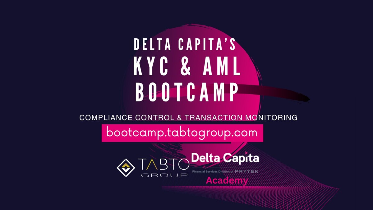 De partners TABTO Group en Delta Capita, organiseren zaterdag 9 december de eerste KYC & AML Bootcamp ‘Compliance Control & Transaction Monitoring’. Na succesvolle afronding van de Bootcamp ontvangt de professional een certificaat van deelname, die voldoet aan de hercertificerings vereisten van de Financial & International Business Association (FIBA) 7 CE (PE) punten.