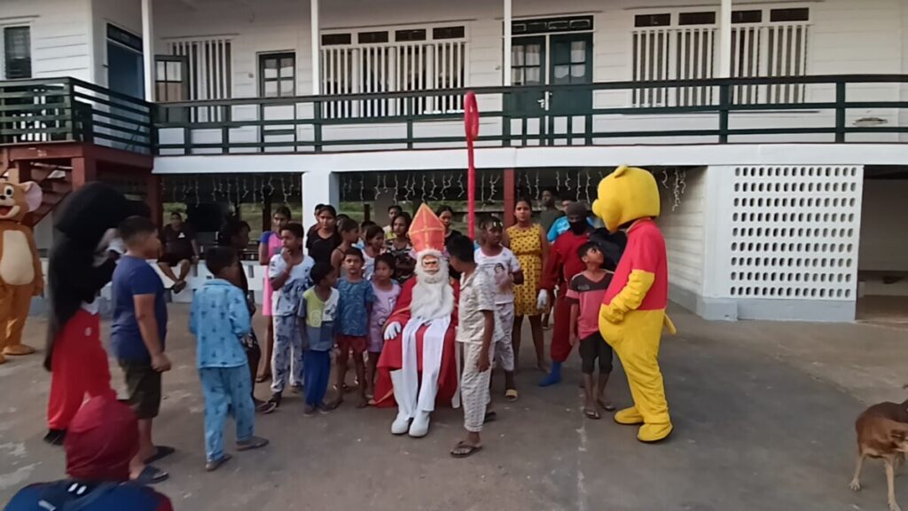 Sinterklaas heeft zondag een bezoek gebracht aan kinderen in het district Commewijne met de ondersteuning van Hermanos Crew.