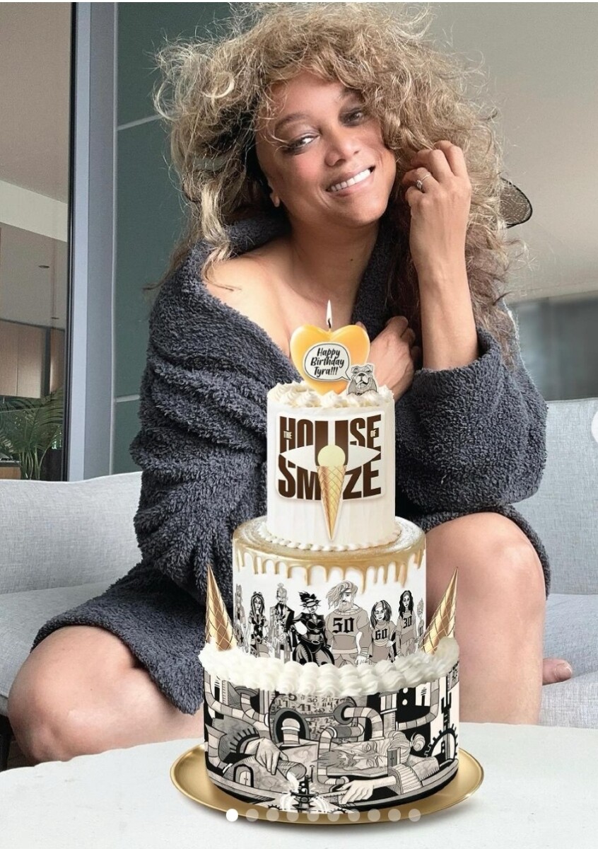 Op de foto’s droeg ze een donzige kamerjas en haar warrige kenmerkende krullen voor een (zij het gephotoshopt, gaf ze toe) glamoureuze taart met drie lagen van haar eigen ijsmerk Smize and Dream. “Ik kan niet geloven dat ik al zoveel jaren op deze aarde ben”, schreef ze in haar bijschrift. “Ik herinner me nog als gisteren het 50e verjaardagsfeestje van mijn moeder en we vierden haar op de grootste manier. Het was een grote. En nu is het van mij.”