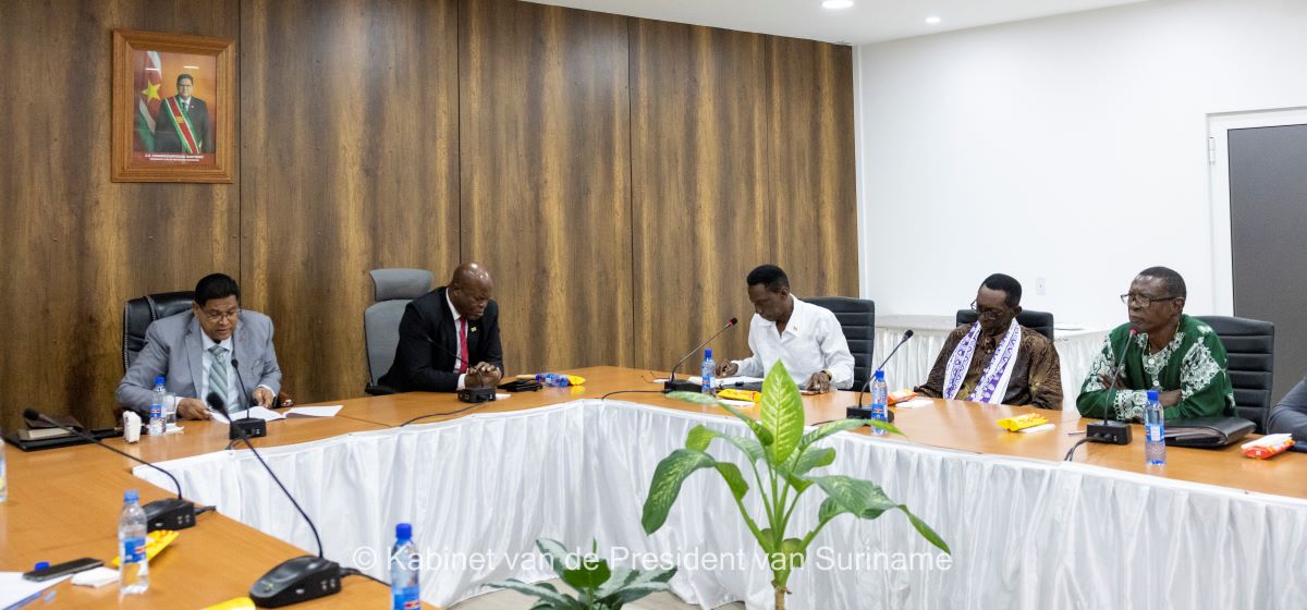 Een delegatie van het kabinet van de granman der Aucaners, onder leiding van hoofdkapitein John Lesina van Drietabbetje, bracht dinsdag 12 december een werkbezoek aan president Chandrikapersad Santokhi. Tijdens de vergadering van de Raad van Ministers (RvM) benadrukte de traditionele gezagsdrager namens grootopperhoofd Bono Velanti diverse kwesties waarmee binnenlandbewoners momenteel worden geconfronteerd.