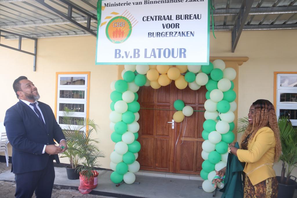 Het opgeknapte Bureau voor Burgerzaken (BvB) te Latour is woensdag door minister Bronto Somohardjo van Binnenlandse Zaken (BiZa) geopend. Hij werd vergezeld van zijn directeur Nasier Eskak, de directrice van het Centraal Bureau voor Burgerzaken, Anastatia Kanape-Pokie, en de Onderdirecteur Administratieve Diensten, Juanito Eijk.