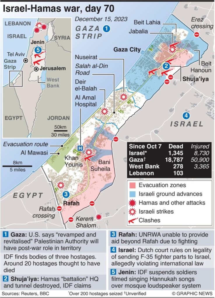 Het gedocumenteerde aantal slachtoffers in de Gazastrook heeft de 18.700 heeft bereikt, terwijl het dodental op de Westelijke Jordaanoever is gestegen naar 286. Bovendien zijn, volgens het Palestijnse ministerie van Volksgezondheid, 51.000 Palestijnen gewond geraakt in Gaza en bijna 3.430 anderen op de Westelijke Jordaanoever.