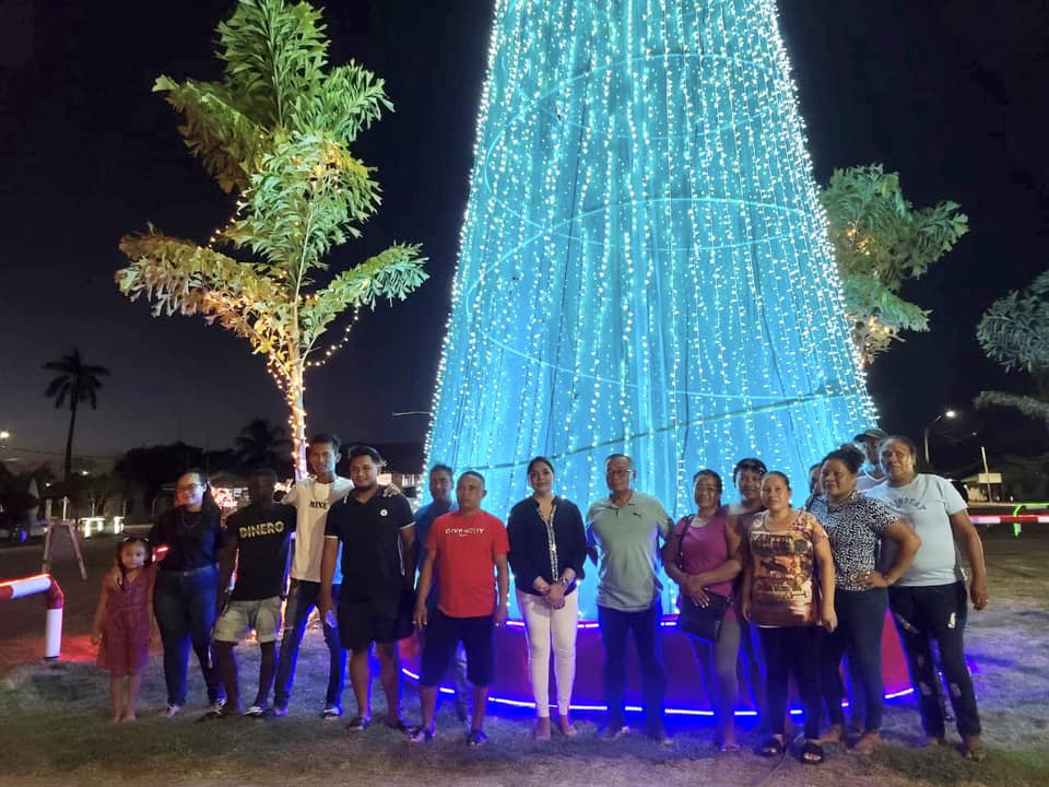 Na de korte toespraken maakten de districtscommissaris, Henk Warsodikromo en de heer Arcieno Redjadiwirja, de kerstboom ceremonieel aan. Ook ging een woord van dank uit naar de heer Ramon Djawalapersad van Roeli’s Lighting en Decor, die ook wat versieringsmateriaal beschikbaar heeft gesteld om het geheel mogelijk te maken.