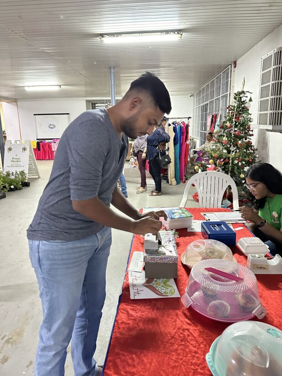In aanloop naar de kerstdagen zat de sfeer er dik in. De vereniging Ati gi Ati, Young Engineers Suriname, Prana Gardens, Misha Beauty Braids, Suraniyat en Sweets by Kay waren allen aanwezig met standjes. Daarnaast was er ook een podiumprogramma voor jonge danseressen van de dansschool Namita Nritya Vidya Bhavan onder leiding van Namita Ajodhia.