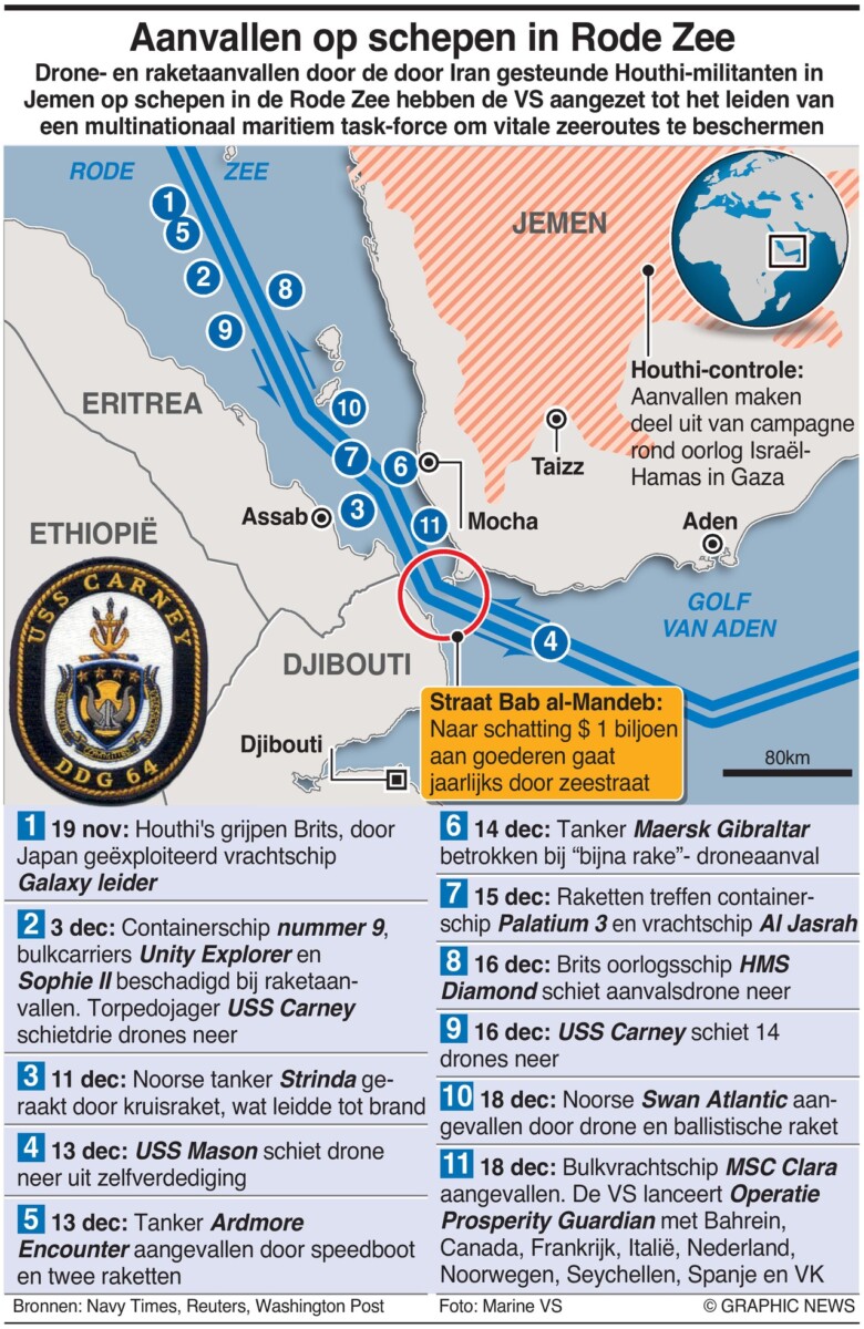 De pro-Palestijnse Houthi-beweging in Jemen beloofde de marinemissie te trotseren en Israëlische doelen in de zuidelijke Rode Zee en de Straat van Bab al-Mandeb te blijven aanvallen.