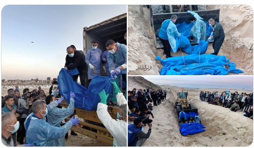 De lichamen van de 80 Palestijnen die zijn meegenomen tijdens het Israëlische grondoffensief in Noord-Gaza zijn opgevangen en begraven in een massagraf in Rafah.