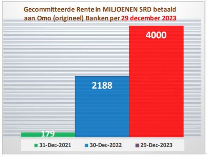 Met deze laatste TD-veiling in 2023 zijn de totale rentekosten van de wekelijkse TD-veilingen sinds zijn introductie in juli 2021 gekomen op SRD 4.000 miljoen (4 miljard). Dit is het bedrag dat de algemene banken tot nu toe hebben verdiend uit hun beleggingen in termijndeposito’s van de CBvS met korte looptijden.