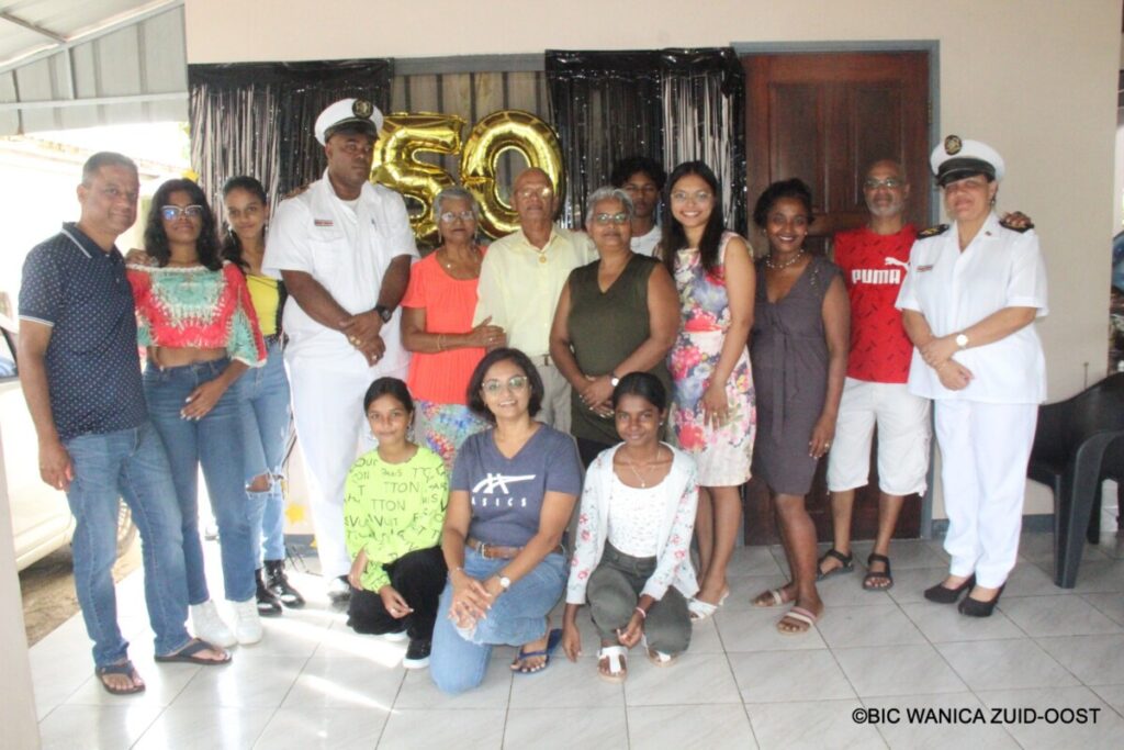 Het echtpaar Ramdin-Gena vierde op oudjaarsdag te de Nieuwe Grond hun gouden bruiloft in aanwezigheid van hun kinderen en families, zo bericht het Burger Informatie Centrum Wanica Zuid-Oost.