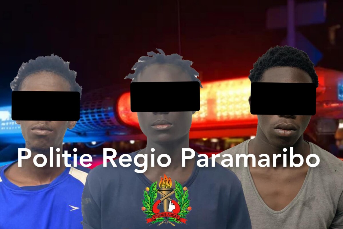De verdachten O.S. (17), F.K. (16) en C.B. (22) zijn donderdag 4 januari na intensief speurwerk door de politie van Recherche Paramaribo bijgestaan door het Regio Bijstand Team Paramaribo, opgespoord en aangehouden ter zake diefstal.