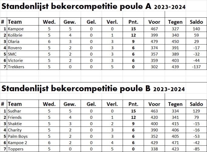 Uitslagen troefcallbeker dinsdag 9 januari 2023: