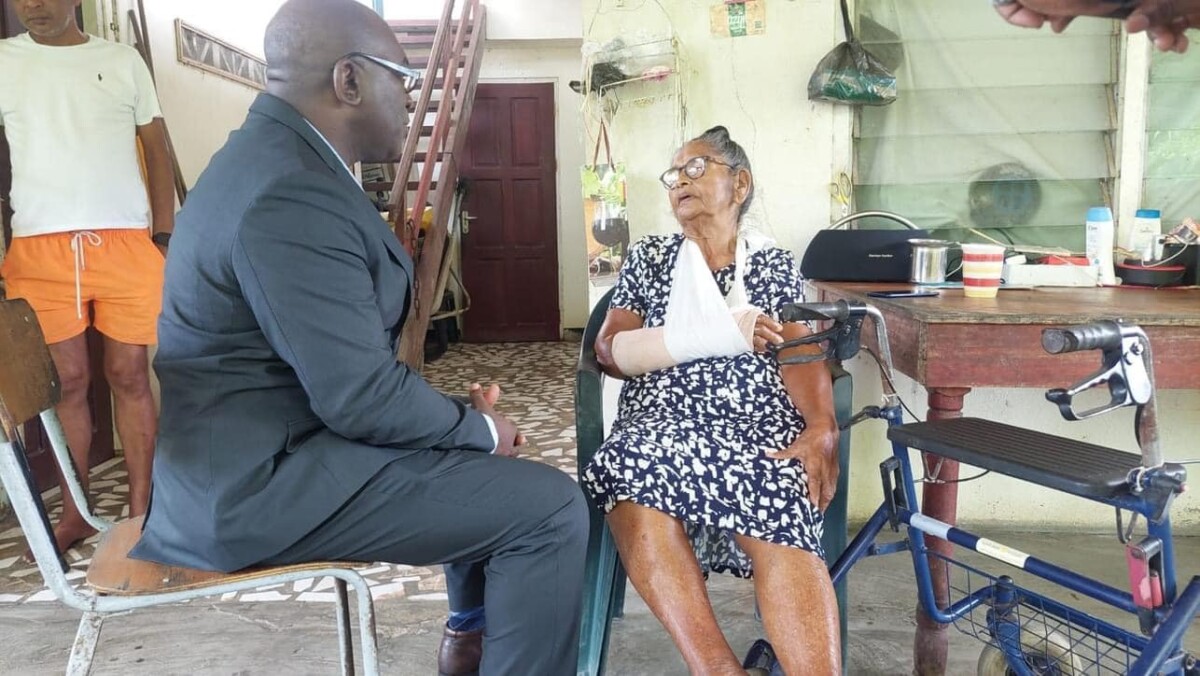 De minister van Justitie en Politie (JusPoL), Kenneth Amoksi, heeft een bezoek gebracht aan de 83-jarige Girjasing Cornelly, het slachtoffer van een brute overval door drie criminelen te Domburg.