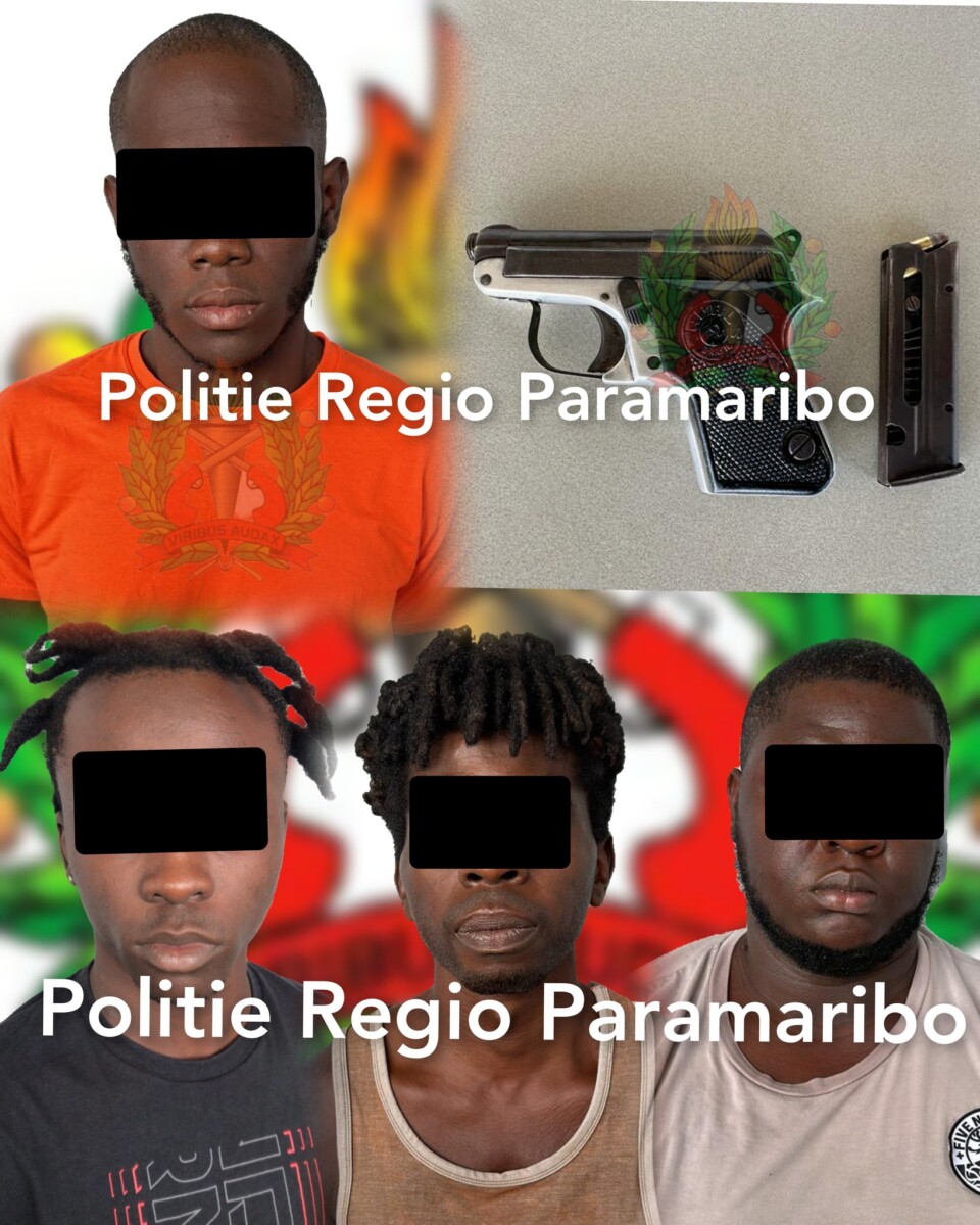 Hedenmorgen, zondag 21 januari 2024, zijn De verdachten W.M. (35), J.L (20), C.S. (27) en O.T. (23) zijn zondagochtend 21 januari door leden van het Regio Bijstandsteam Paramaribo aangehouden, verdacht van beroving van een man, en aan de afdeling Kapitale Delicten overgedragen.