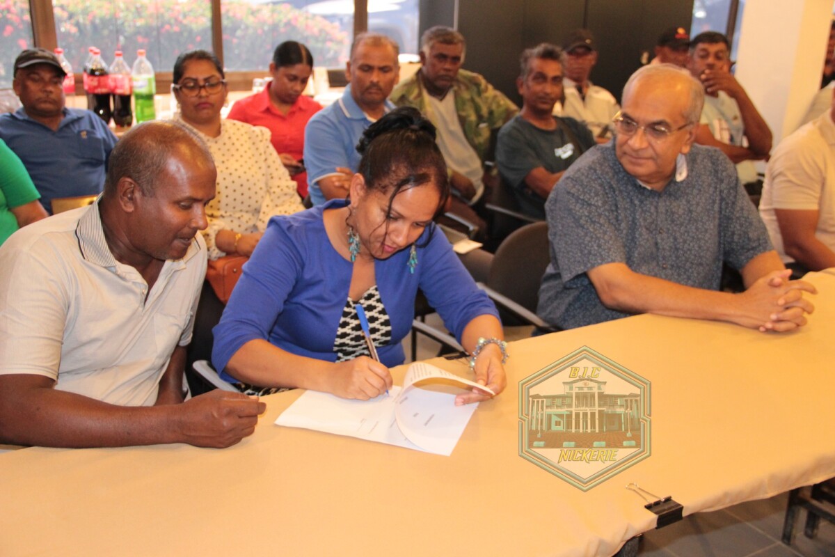 Onder het toeziend oog van minister Parmanand Sewdien van LVV mochten 25 belanghebbenden hun overeenkomsten tekenen met de voorzitter van Shaktimaan, mvr. Janulah Salarbax. De komende week zullen de overige boeren in de gelegenheid gesteld worden om hun overeenkomsten te tekenen.