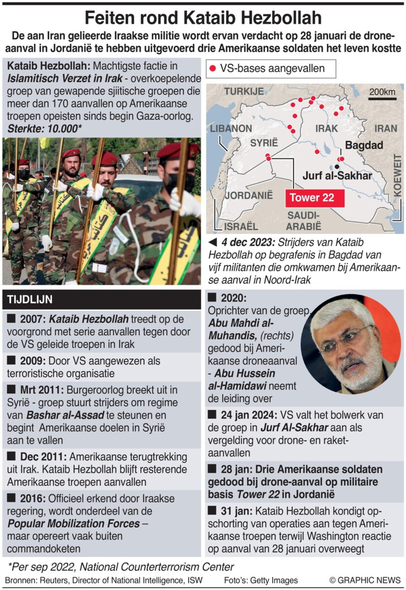 Drie Amerikaanse troepen werden gedood in een drone-aanval nabij de Jordanië-Syrië grens op 28 januari, waarvan het Pentagon zei dat het de “voetafdrukken” van Kataib Hezbollah droeg.