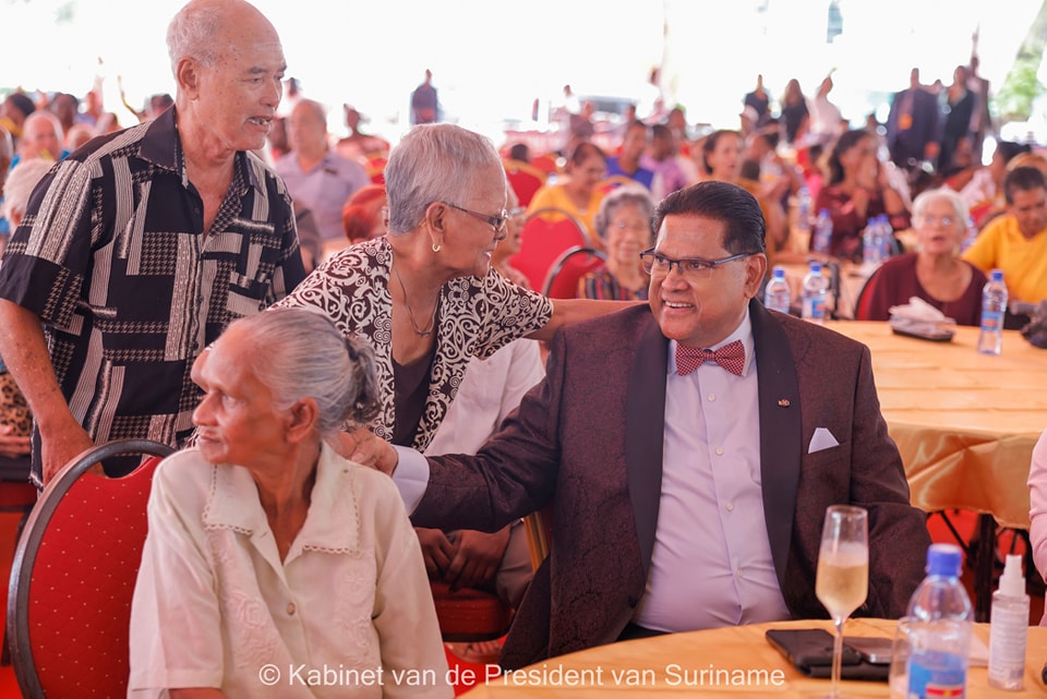 “Wat er tot nu toe in Suriname aan ontwikkeling is bereikt, is ook door uw werk en kracht”, sprak de president.