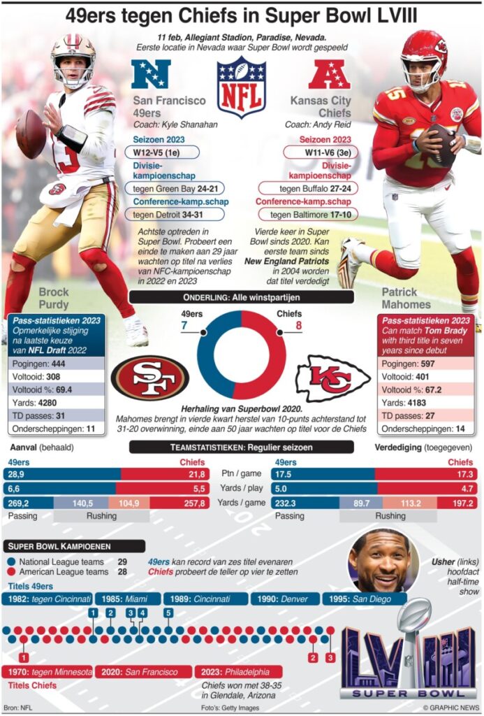 Kaartjes voor de Super Bowl LVIII van zondag tussen de Kansas City Chiefs en de San Francisco 49ers, die voor het eerst worden gespeeld in het Allegiant Stadium in Las Vegas, zijn de duurste in de geschiedenis van het evenement.