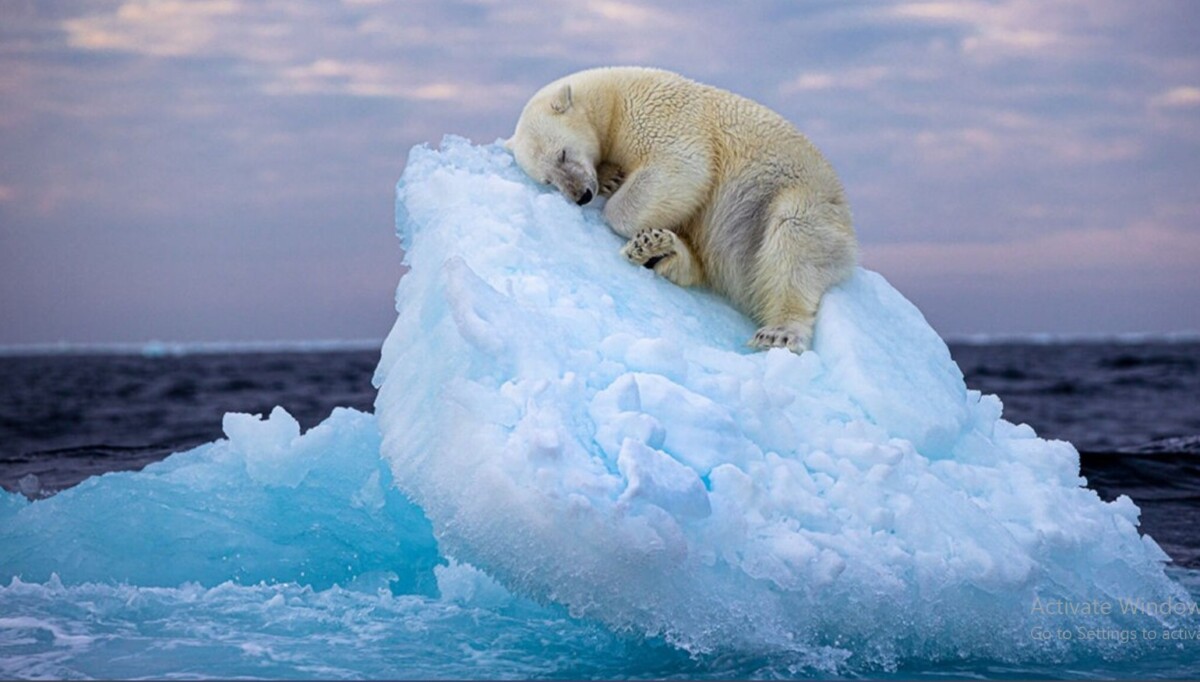 Een ijsbeer, rustig slapend op een ijsschots gefotografeerd vlakbij het Noorse eiland Spitsbergen, is in de prijzen gevallen. De fotograaf is de winnaar van de publieksprijs van de Wildlife Photographer Award, een prestigieuze prijs voor natuurfotografie.