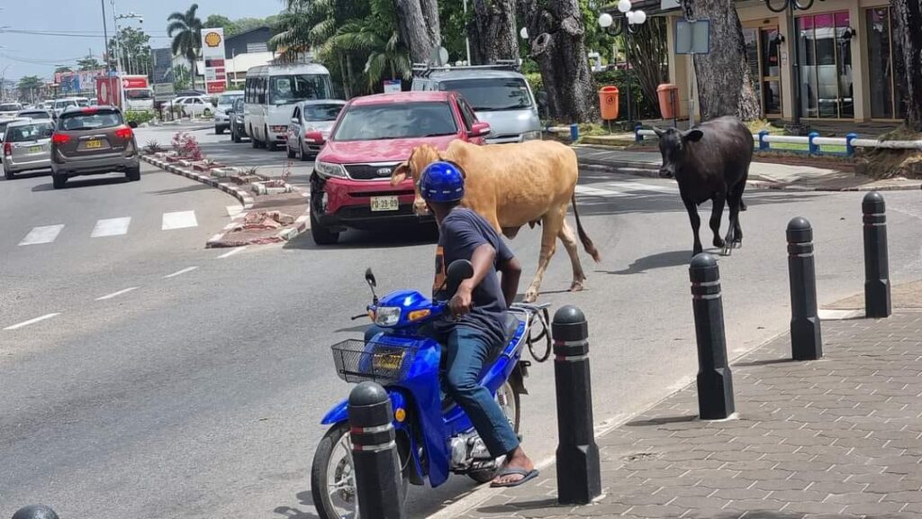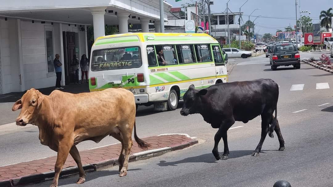 Een groep loslopende koeien heeft vandaag, woensdag 14 februari, verwarring en vermaak gezaaid in hartje uitgaanscentrum van Paramaribo. Voorbijgangers en uitgaanspubliek werden verrast door de plotselinge aanwezigheid van de dieren op pleinen en in de smalle straatjes, waar ze normaal gesproken enkel menselijke voetgangers verwachten.