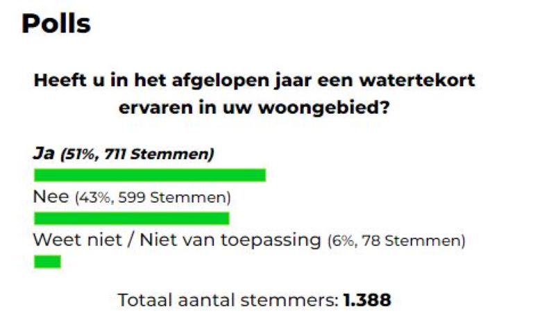 De uitslag van deze peiling werpt licht op een kwestie die urgent aandacht verdient. Het watertekort is niet alleen een ongemak maar raakt ook aan de kern van levenskwaliteit en gezondheid. Met een merendeel dat de negatieve gevolgen van een beperkte watervoorziening ervaart, roept dit vragen op over de effectiviteit van het huidige waterbeheersysteem en of er voldoende wordt gedaan om deze essentiële bron toegankelijk te maken voor iedereen.