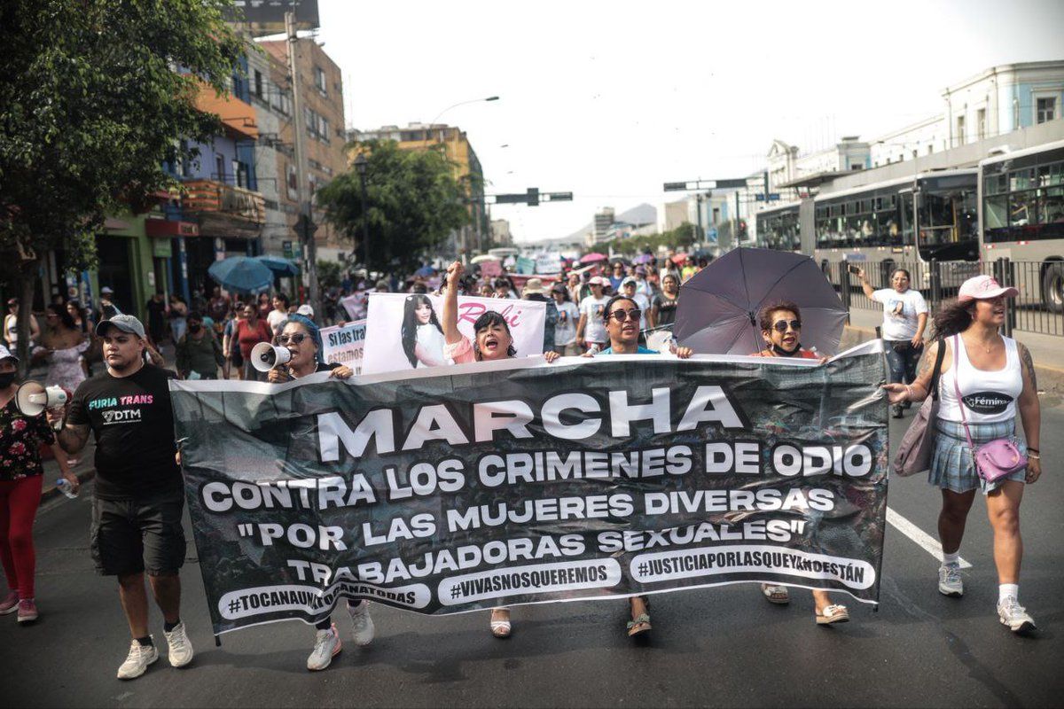 Tientallen transgenders en leden van de LGTBIQ+-gemeenschap demonstreerden dinsdag door de straten van Lima om te protesteren tegen haatmisdrijven en hun ‘recht op leven’ te verdedigen.