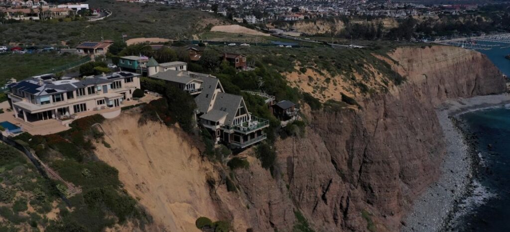 In Dana Point, net onder L.A., zijn enkele kapitale villa’s overeind gebleven, maar dat geldt niet voor de klif waar ze op gebouwd zijn.