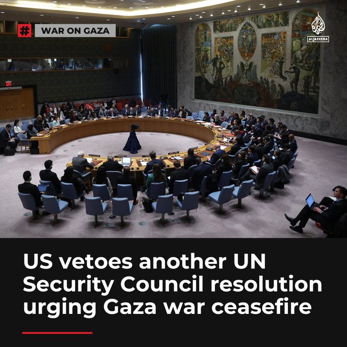De VS vetoën een nieuwe resolutie van de VN-Veiligheidsraad waarin wordt aangedrongen op een staakt-het-vuren in de Gaza-oorlog