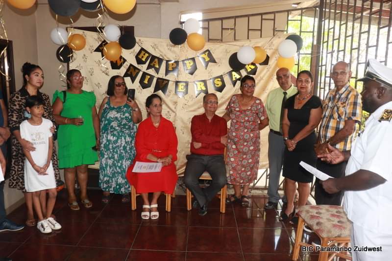 Het echtpaar Simbhoedatpanday-Binda vierde vrijdag 23 februari hun gouden huwelijk. De heer Alfred Simbhoedatpanday en mevrouw Esselien Simbhoedatpanday-Binda kijken terug op vijftig jaar huwelijk, gevuld met liefde, respect, geduld en de kracht van de Heer.