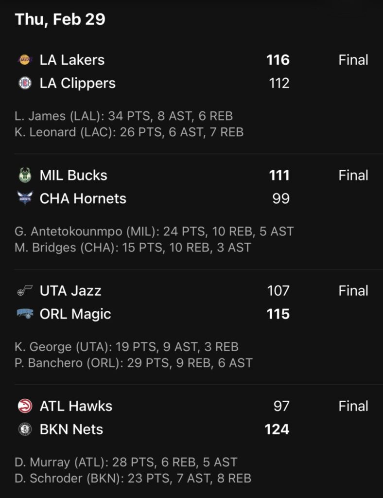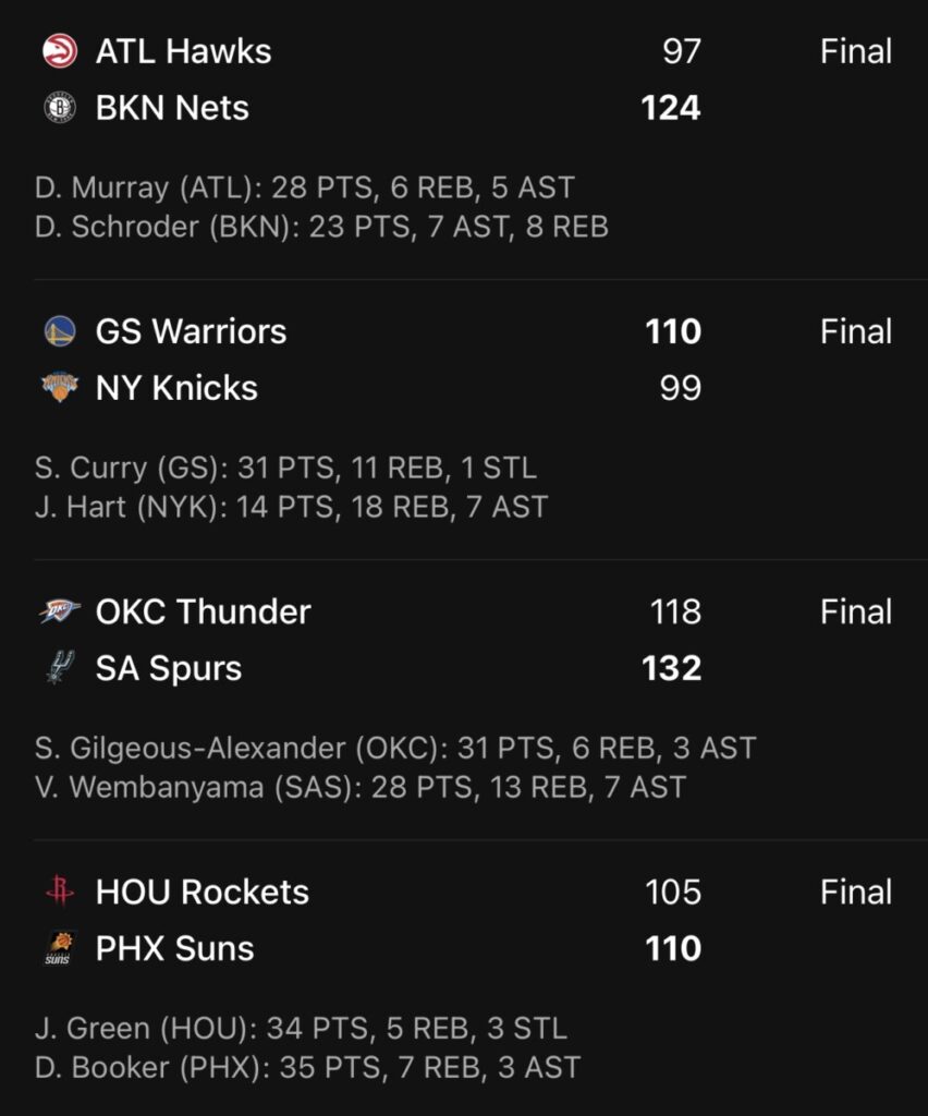 De Brooklyn Nets behaalden een belangrijke 124-97 overwinning op de Atlanta Hawks in het thuisspeldebuut van interim-coach Kevin Ollie, en de Milwaukee Bucks versloegen de Charlotte Hornets met 111-99, mede dankzij Giannis Antetokounmpo’s 24 punten. De Phoenix Suns waren met 110-105 te sterk voor de Houston Rockets, met Devin Booker in een hoofdrol die 35 punten scoorde. Tot slot wonnen de Orlando Magic met 115-107 van de Utah Jazz, waarbij Paolo Banchero schitterde met 29 punten na een korte afwezigheid.