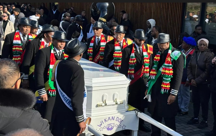 De Mobiele Eenheid (ME) was vandaag, zaterdag 2 maart, uit voorzorg aanwezig bij de uitvaart van Danzel Silos, beter bekend als rapper Bigidagoe. Bij de uitvaart waren honderden mensen aanwezig. De kist werd door dragers zingend en dansend (zie foto: bron AT5) naar de rouwauto gebracht. De rapper is vanaf het uitvaartcentrum in Amsterdam Zuidoost in een stoet naar begraafplaats Westgaarde gebracht in Osdorp, aldus bericht onder andere de lokale Amsterdamse zender AT5.