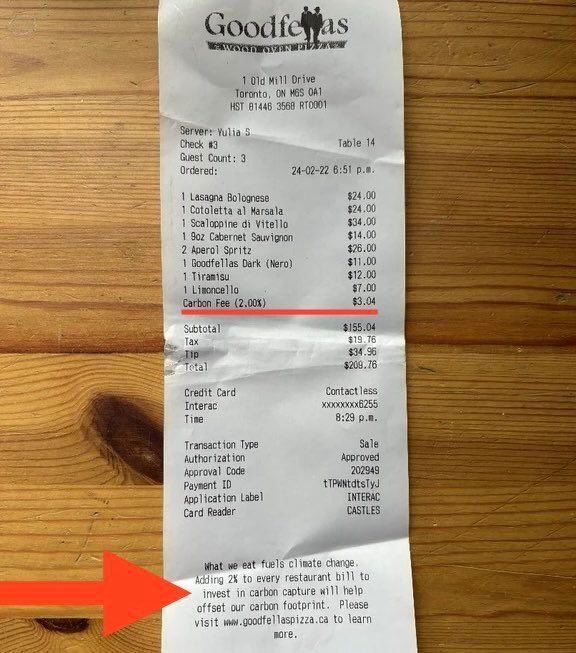 In een baanbrekende stap die zowel verrassend als vernieuwend is, beginnen Canadese restaurants 2 procent CO2-belasting toe te voegen aan hun rekeningen. Deze maatregel, hoewel onverwacht, opent een nieuw hoofdstuk in de strijd tegen klimaatverandering, rechtstreeks vanaf de eettafel.