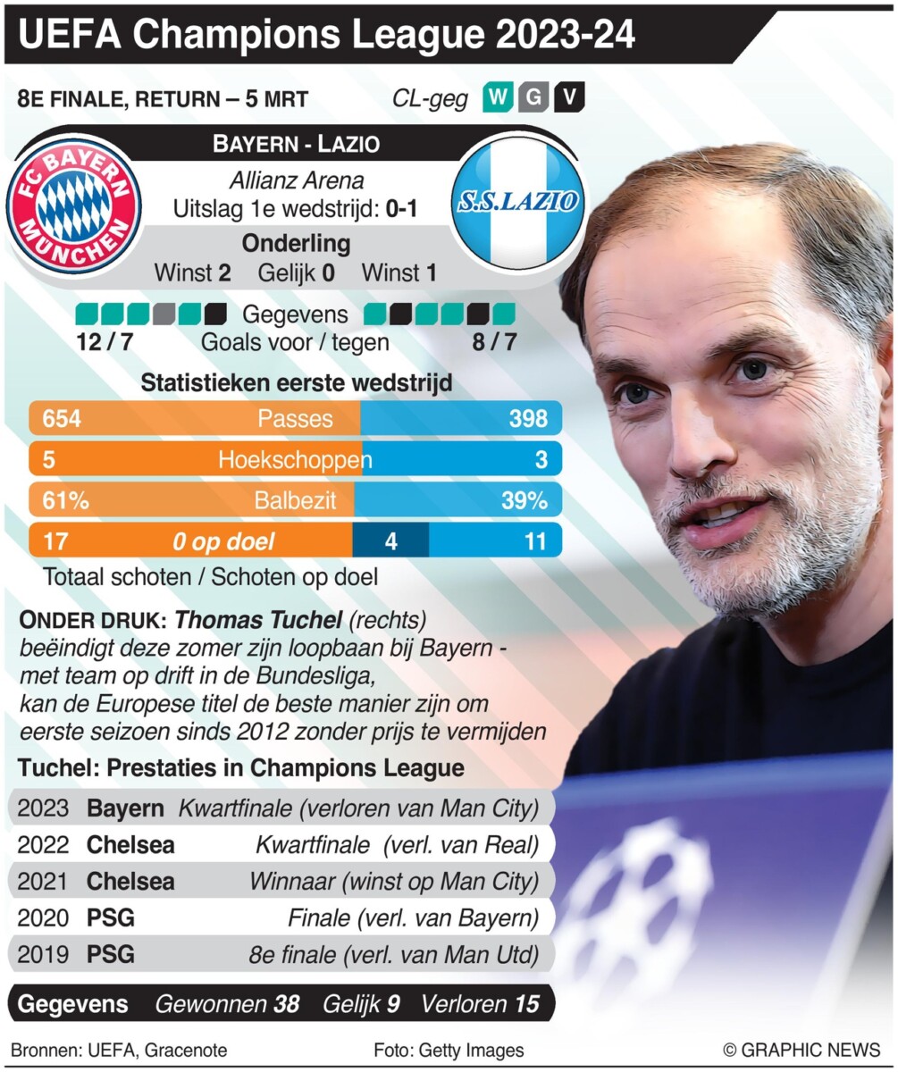 Op 5 maart 2024 gaan de achtste finales van de UEFA Champions League verder met onder meer de confrontatie tussen Bayern München en Lazio in de Allianz Arena, München. De loting voor de kwartfinales vindt plaats op 15 maart in Nyon, Zwitserland.