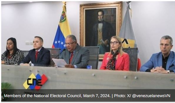 De Nationale Kiesraad van Venezuela (CNE) heeft internationale organisaties uitgenodigd om de presidentsverkiezingen op 28 juli 2024 als waarnemers bij te wonen. Instellingen zoals CELAC, CARICOM, de Afrikaanse Unie, de Europese Unie, en het Carter Centrum hebben uitnodigingen ontvangen. Het verkiezingsproces begint met een kandidaatnominatieperiode van 21 tot 25 maart, gevolgd door een campagneperiode van 4 tot 25 juli. Daarnaast wordt een speciale registratieperiode voor kiezers gestart op 18 maart, inclusief locaties buiten Venezuela voor in het buitenland woonachtige kiezers. De CNE zal tussen 22 en 29 mei het definitieve kiesregister opstellen, dat op 6 juni wordt gepubliceerd. Verder zullen vanaf 4 juli de verkiezingstechnologie, stemmachines en andere apparatuur worden gecontroleerd en gedistribueerd, met stembureaus die uiterlijk op 26 juli klaar moeten zijn voor de verkiezingsdag.