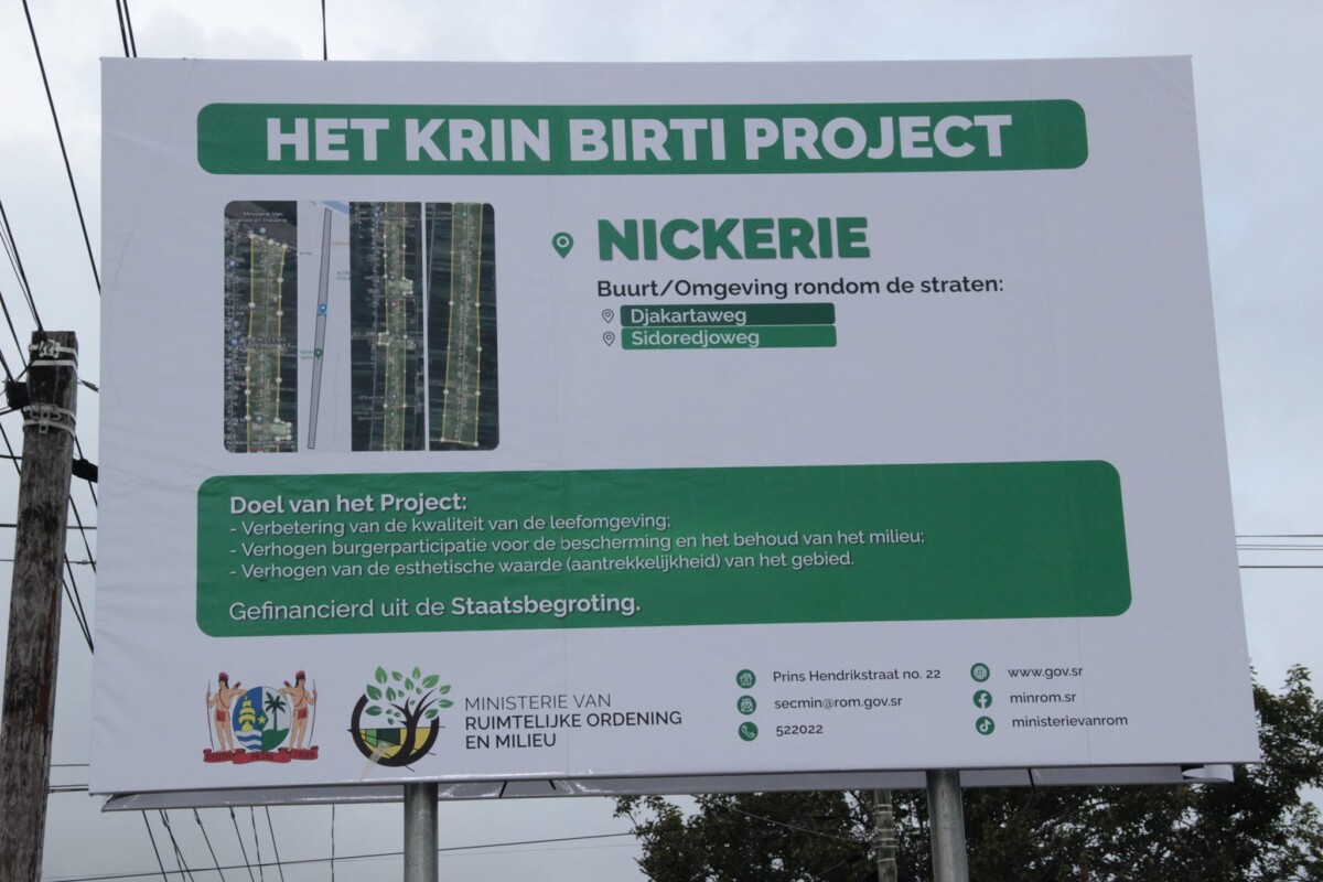 Minister Marciano Dasai van Ruimtelijke Ordening en Milieu heeft in het weekend te Sidoredjo in het district Nickerie het Krin Birti project gelanceerd. Dit project zal ook gelanceerd worden in Saramacca, Commewijne en Paramaribo en heeft als doel de leefomgeving te verbeteren, publieke betrokkenheid te vergroten voor milieubescherming en esthetische waarde van het gebied te verhogen, zo bericht het Burger Informatie Centrum Nickerie.