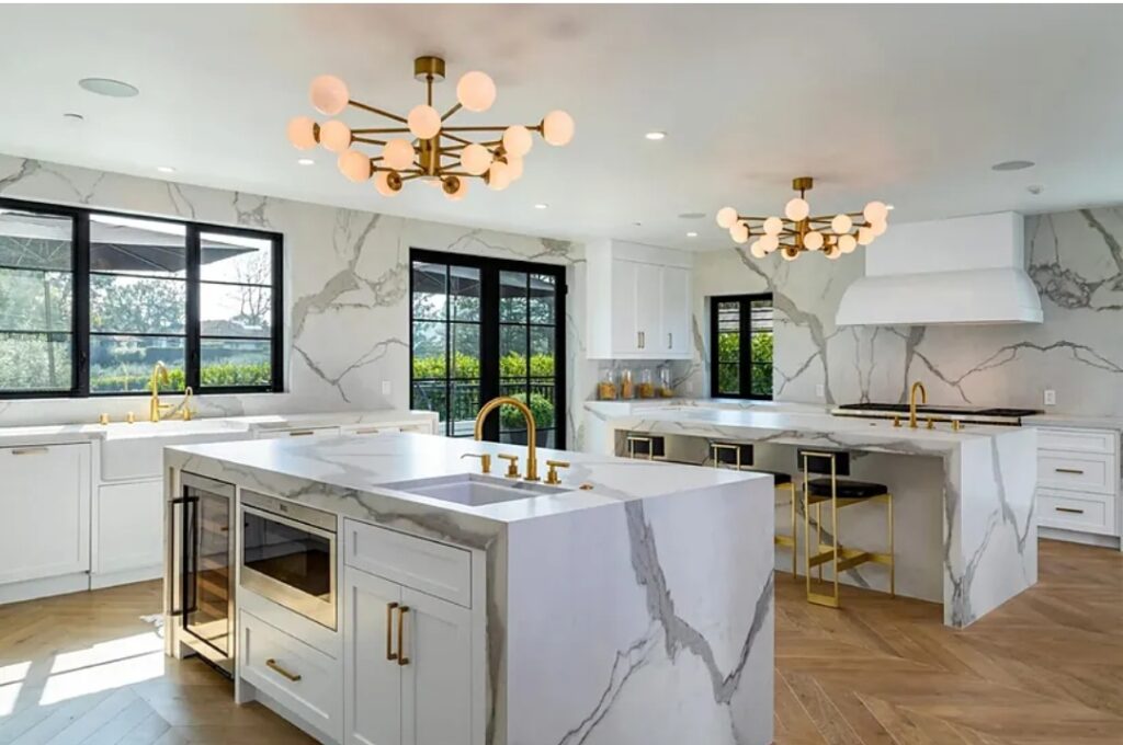 Er is zeker ruimte voor het hele gezin, aangezien de totale vierkante meter van de woning bijna 22.000 vierkante meter bedraagt. De woning zelf beschikt over vijf grote slaapkamers en zeven badkamers.