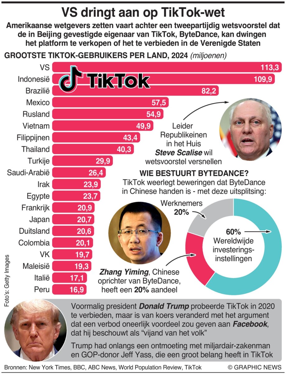 House Majority Leader en de Amerikaanse Republikeinse vertegenwoordiger voor Louisiana Steve Scalise, zegt dat het Huis zal proberen de goedkeuring van een wetsvoorstel te bespoedigen dat tot doel heeft ByteDance, de eigenaren van TikTok, te dwingen het platform te verkopen, anders wordt het in de Verenigde Staten verboden.