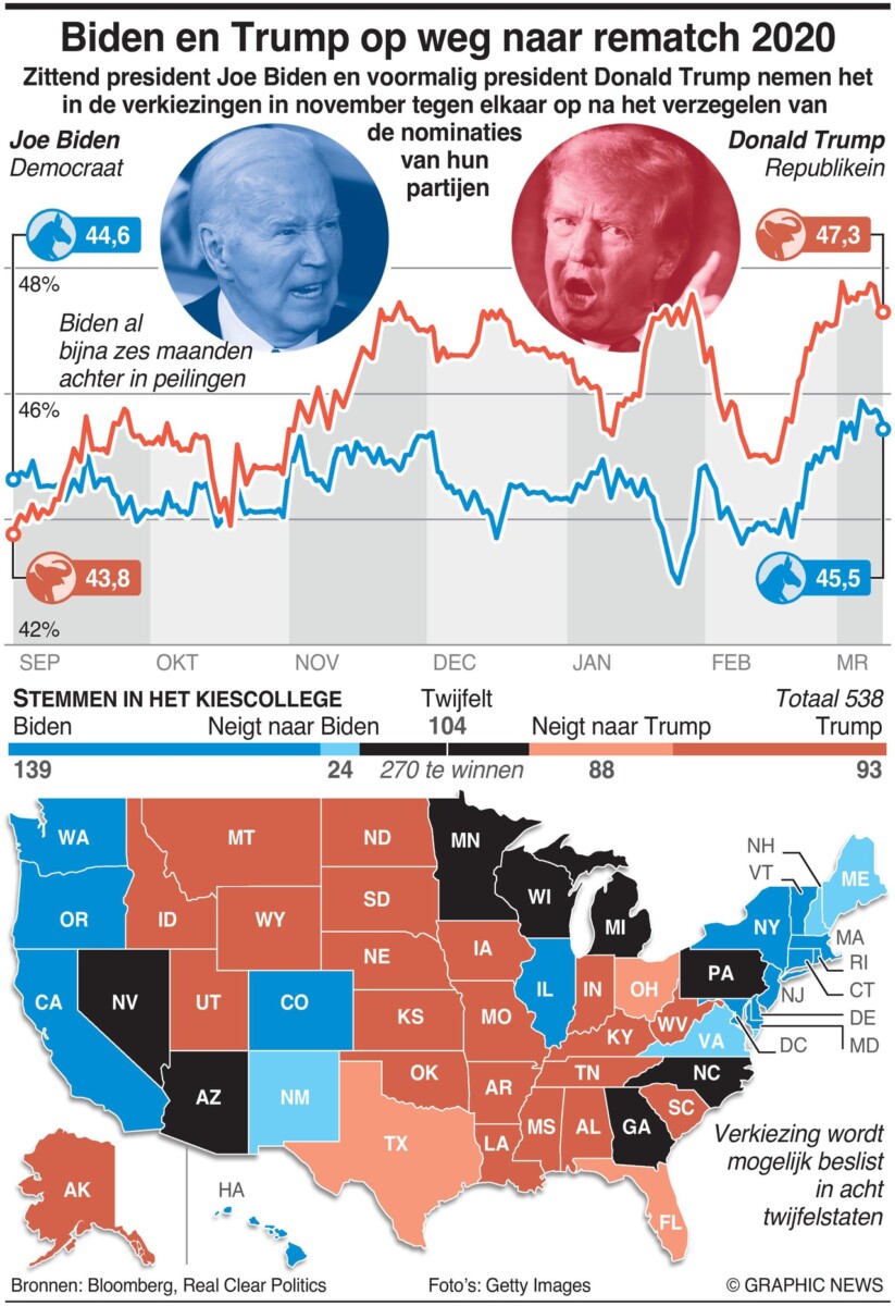 March 13, 2024 – De zittende democraat Joe Biden en de Republikeinse voormalige president Donald Trump staan klaar voor een herkansing van de verkiezingen van 2020 nadat beiden de nominaties van hun partij hebben bezegeld.