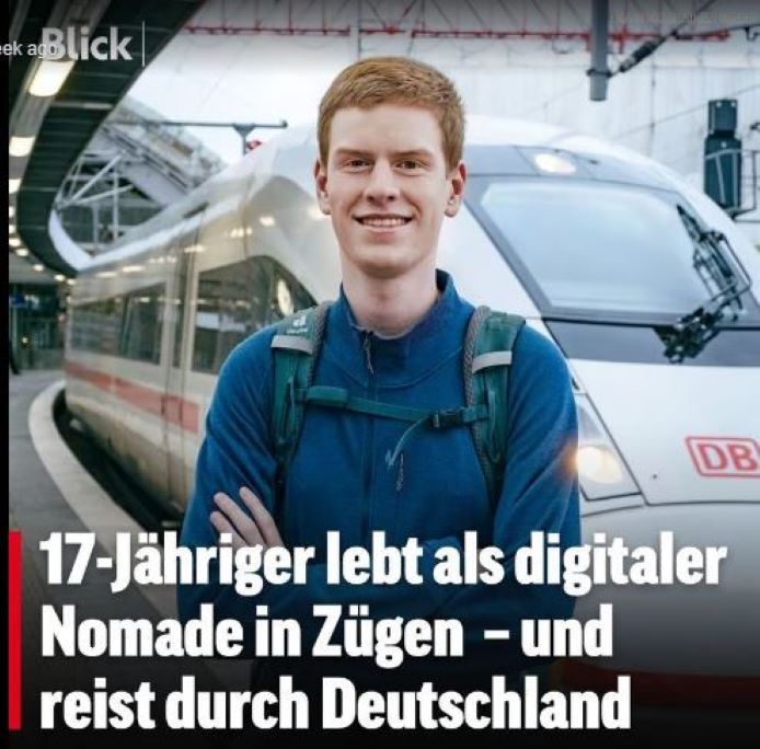 Een 17-jarige in Duitsland heeft het ouderlijk huis verlaten om een unieke levensstijl als digitale nomade in treinen te omarmen. Lasse Stolley, die overtuigd was dat zijn schoolstudies achter de rug waren, kreeg toestemming van zijn ouders om aan zijn trein hoppen avontuur te beginnen.