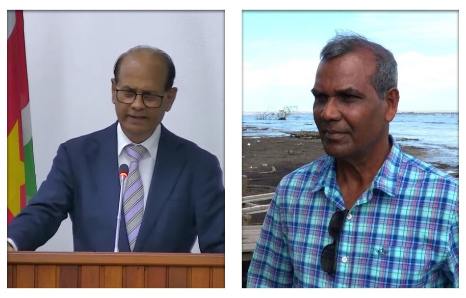 Van de regering wil de NDP-fractieleider geïnformeerd worden over wat de situatie is te Weg naar Zee. Er is veel zout water gestroomd naar de agrarische gebieden, met zeer nadelige gevolgen voor de agrarische activiteiten. Boeren in het Weg naar Zee gebied hebben hulp nodig, en van de regering wil Parmessar weten wat het plan daartoe is.