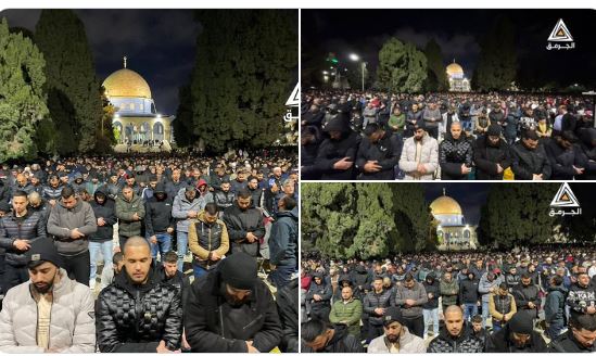 Volgens de Islamitische Waqf in Jeruzalem verrichtten 20.000 gelovigen de avond- en Taraweeh-gebeden in de Al-Aqsa-moskee.