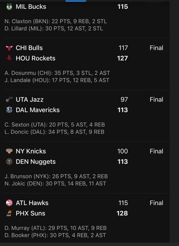In ander NBA-nieuws wonnen de Denver Nuggets van de New York Knicks met 113-100, mede dankzij een triple-double van Nikola Jokic. De Dallas Mavericks versloegen Utah Jazz met 113-97, met een indrukwekkende prestatie van Luka Doncic. De Orlando Magic behaalden een 121-106 overwinning op de New Orleans Pelicans, waarbij Paolo Banchero een triple-double noteerde. De Washington Wizards braken hun verliesreeks met een 109-102 winst op de Sacramento Kings. Ten slotte wonnen de Milwaukee Bucks van de Brooklyn Nets met 115-108, ondanks een sterke inhaalpoging van de Nets in het vierde kwart.